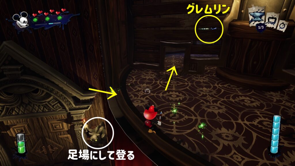 ★マダムに報告すれば先に進めますが、出現した階段を進んでいくとグレムリンがいるので救出しておくとボス戦が楽になります