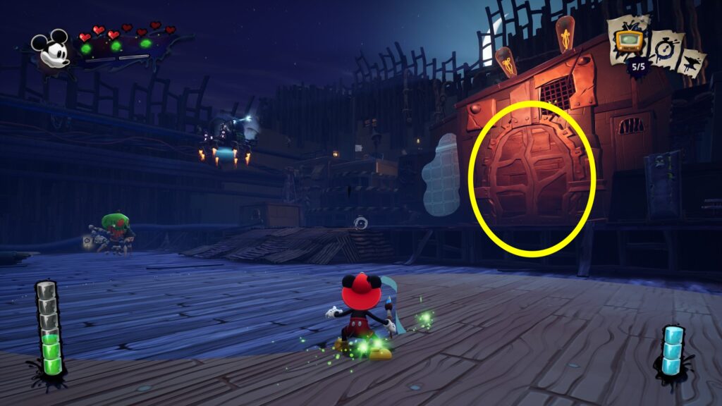 パイプを登る途中にグレムリンがいます。救出してEチケット100枚を渡すとボス戦が楽になります